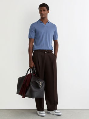 Crafted from merino wool for a soft handle and a luxurious finish, the Milburn open-collar polo shirt in navy has been woven with a lightly textured feel for subtle interest. Pair with chinos and trainers for sophisticated summer style.