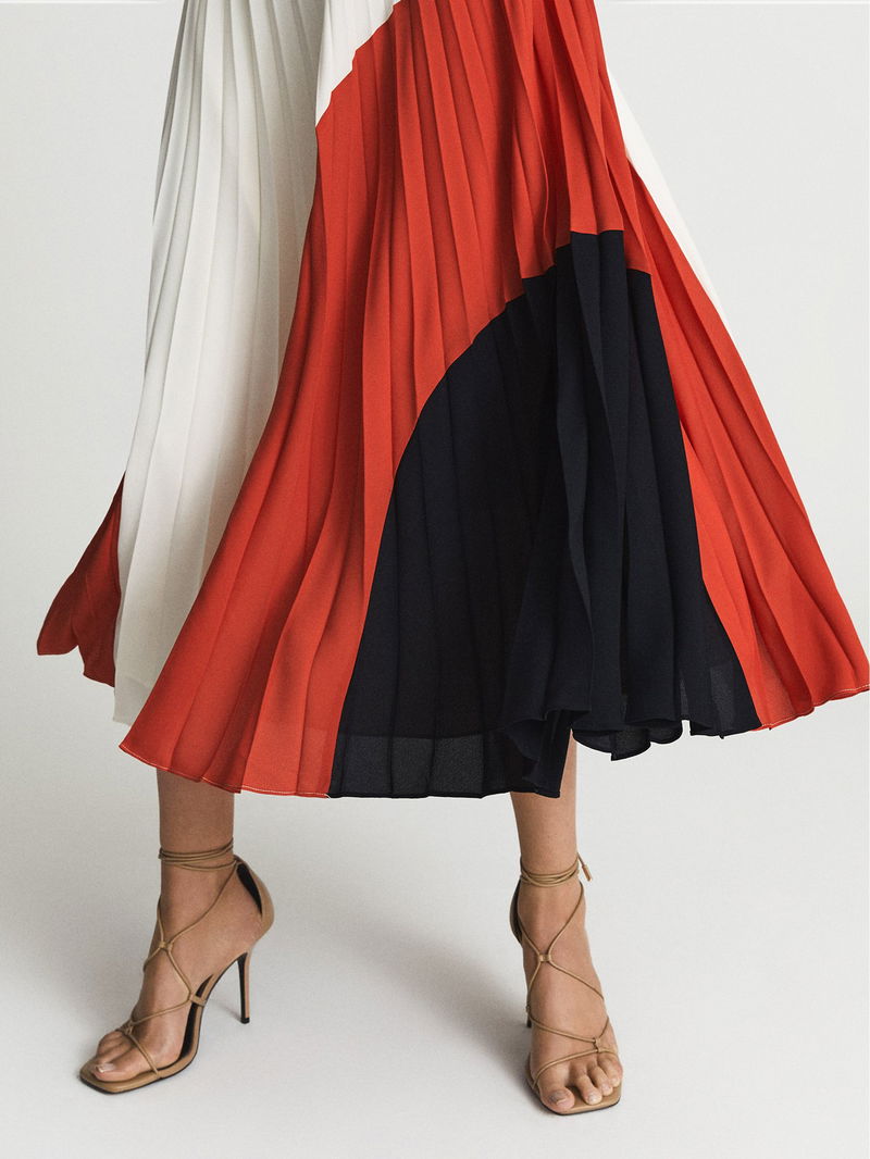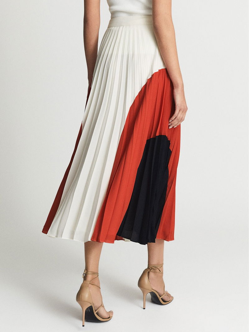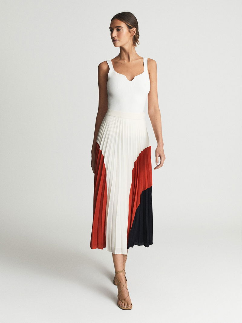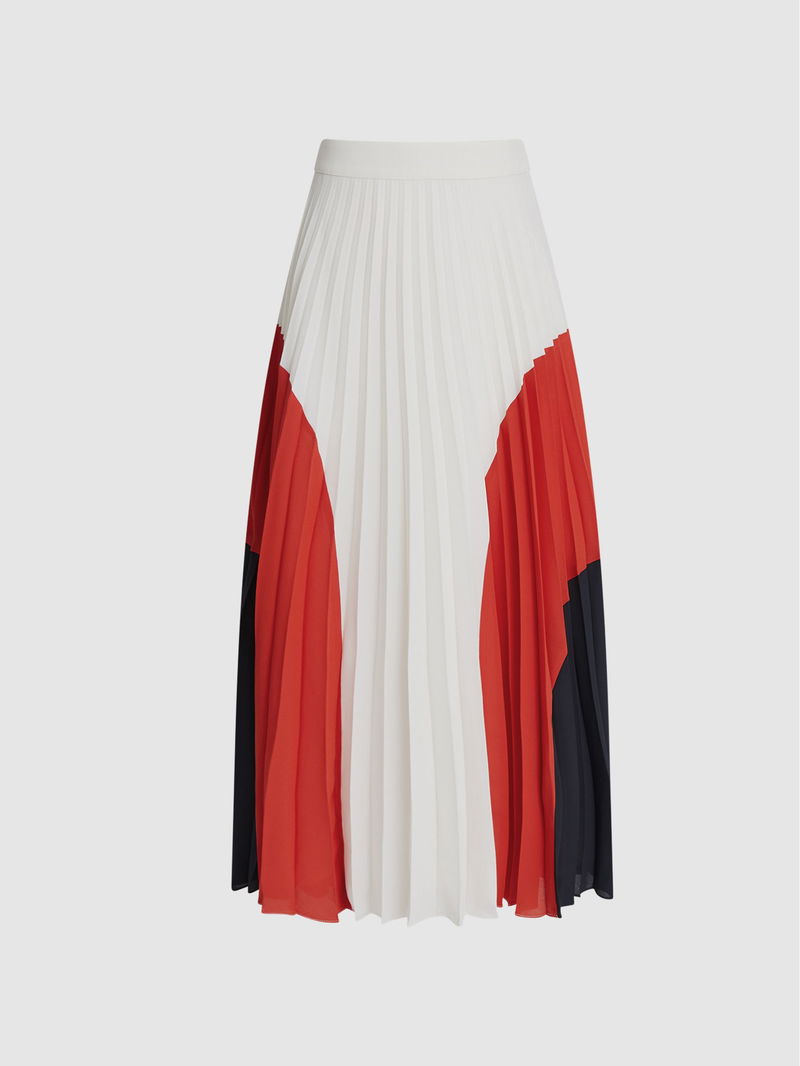 The Murphy Petite skirt, hued in white and red, is masterfully pleated to create a fluid profile. It s shaped to a high-waist profile. Wear The Murphy Petite skirt, hued in white and red, is masterfully pleated to create a fluid profile. It s shaped to a high-waist profile. Wear it with knitwear, a blazer and heels for a chic edit.