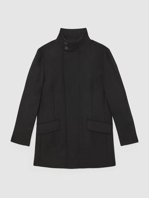 The Myers in black is typical of the brand's storied timeless style. It's crafted from a wool blend in twill, constructed to a double-breasted button front close with notch lapels, flap pockets and side slip pockets, then the satin lining allows smooth, easy layering. Wear it over a roll-neck jumper with jeans and boots for winter cool.