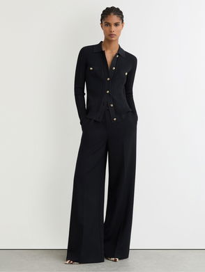 The printed Olivia shirt fuses formal style with contemporary design. A knitted back, collar, cuffs, and waistband are featured for extra comfort, also add a striking contrast to the style. Pair with the Sky trousers for a relaxed yet put-together look.