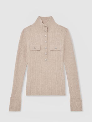 The India top is crafted in an airy open knit for a lightweight, textured feel. A polo collar and short button placket refine the silhouette with a touch of retro influence.