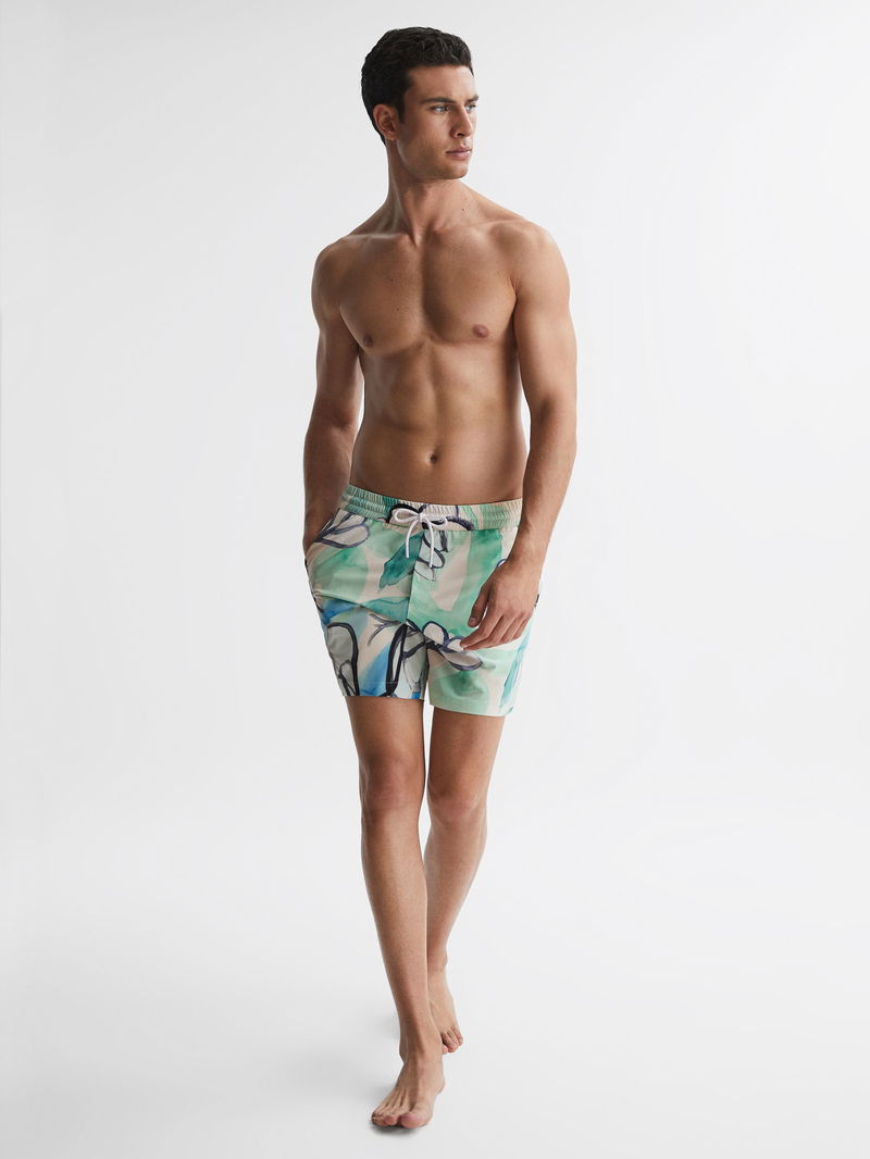 The Pacific swim shorts feature a stylish, watercolour print, ideal for days spent by the pool. Secure the fit with the drawstring waistband and pair it with your go-to warm-weather shoes.