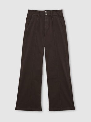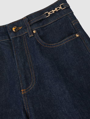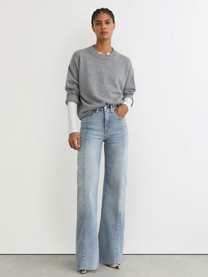 A modern take on vintage denim, the Mid Blue Bella jeans are crafted from soft stretch cotton-modal. Their high-rise waist and wide-leg silhouette channel a subtle ’70s mood, with front patch pockets adding structure and charm.