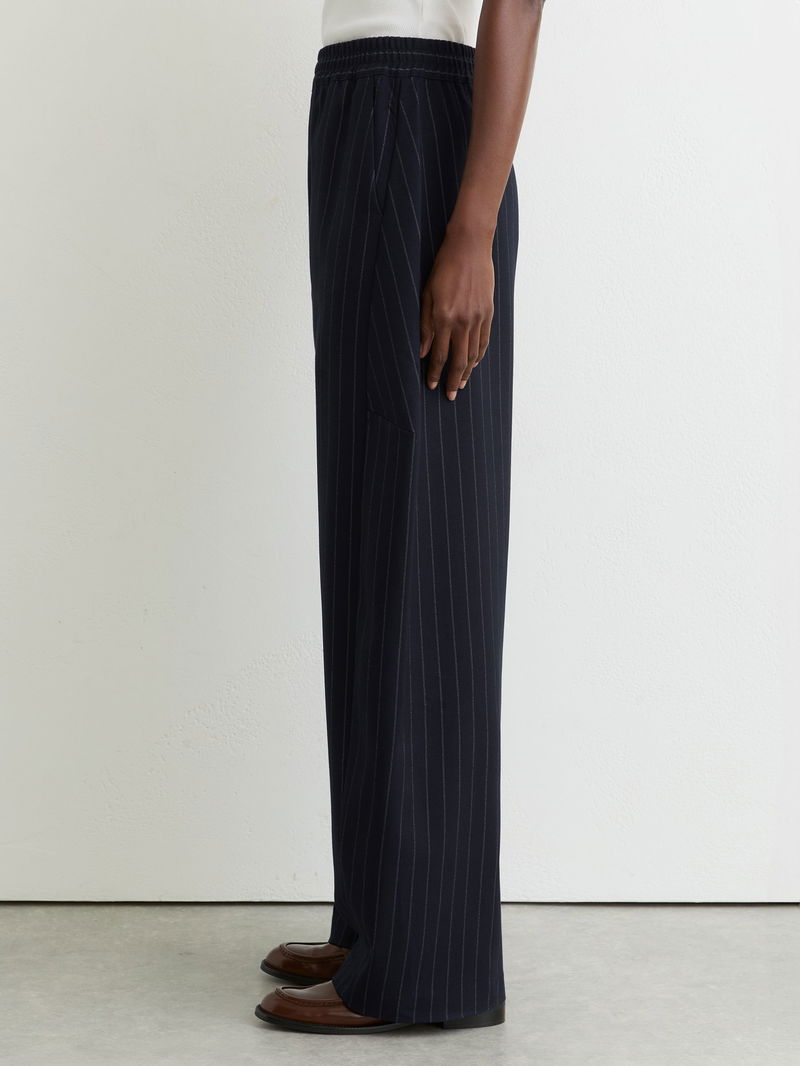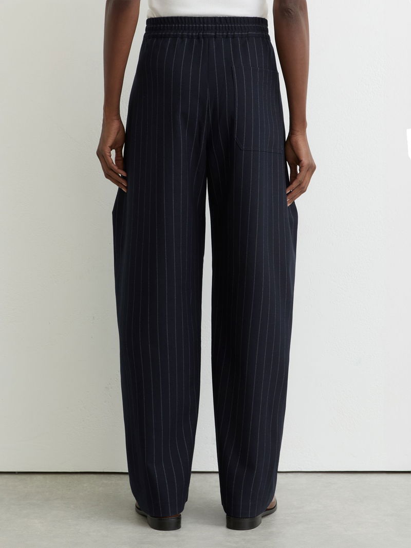 Petite Barrel-Leg Pinstripe Trousers In Navy
