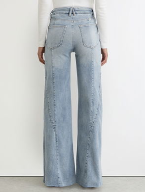 Crafted from stretch cotton with a slightly more supple quality than traditional denim, the Heather jeans hug the hips and drape to a wide-cut leg. The high-rise pair are subtly elevated by raised front seams.