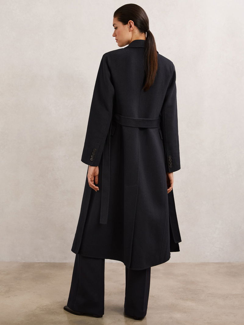 Petite Double-Breasted Blindseam Coat Wool-Blend In Navy