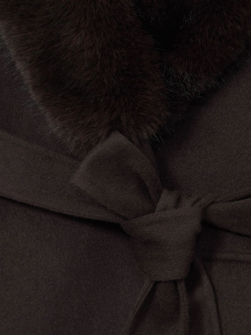 Petite Faux-Fur Collar Blindseam Coat Wool-Blend In Chocolate Brown