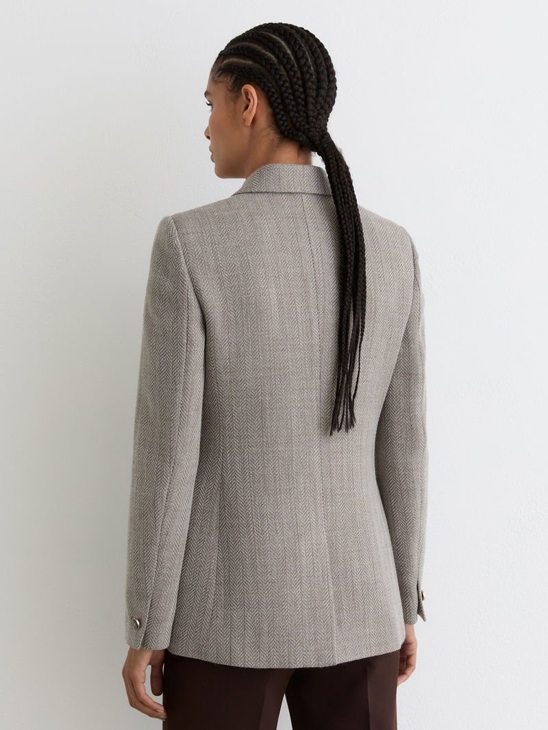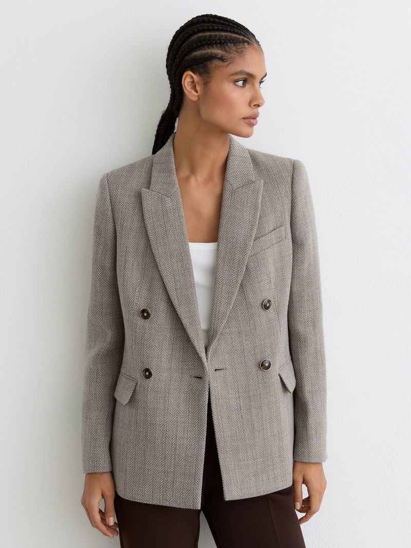 Petite Herringbone Double-Breasted Blazer Wool-Cotton In Grey