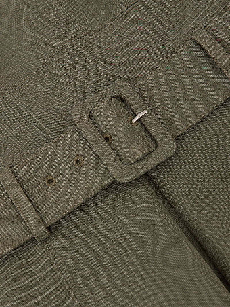 Petite Mesh-Panel Belted Pleated Midi Dress In Khaki Green