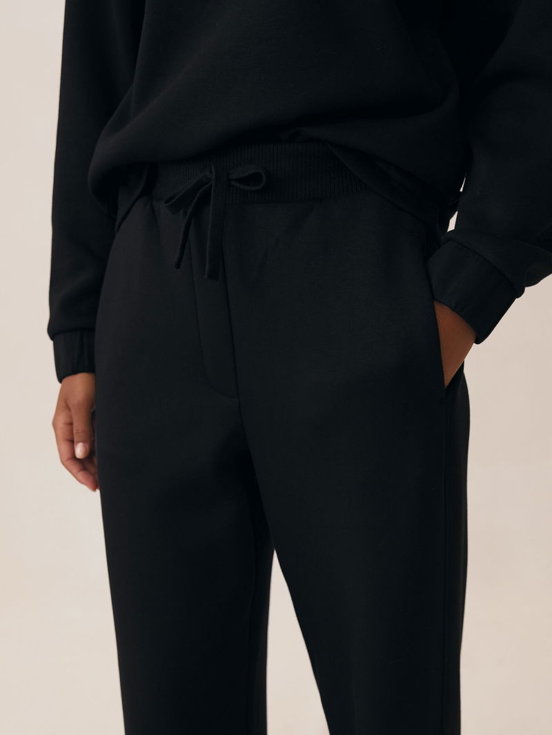 Petite Premium Interlock Wide-Leg Joggers In Black