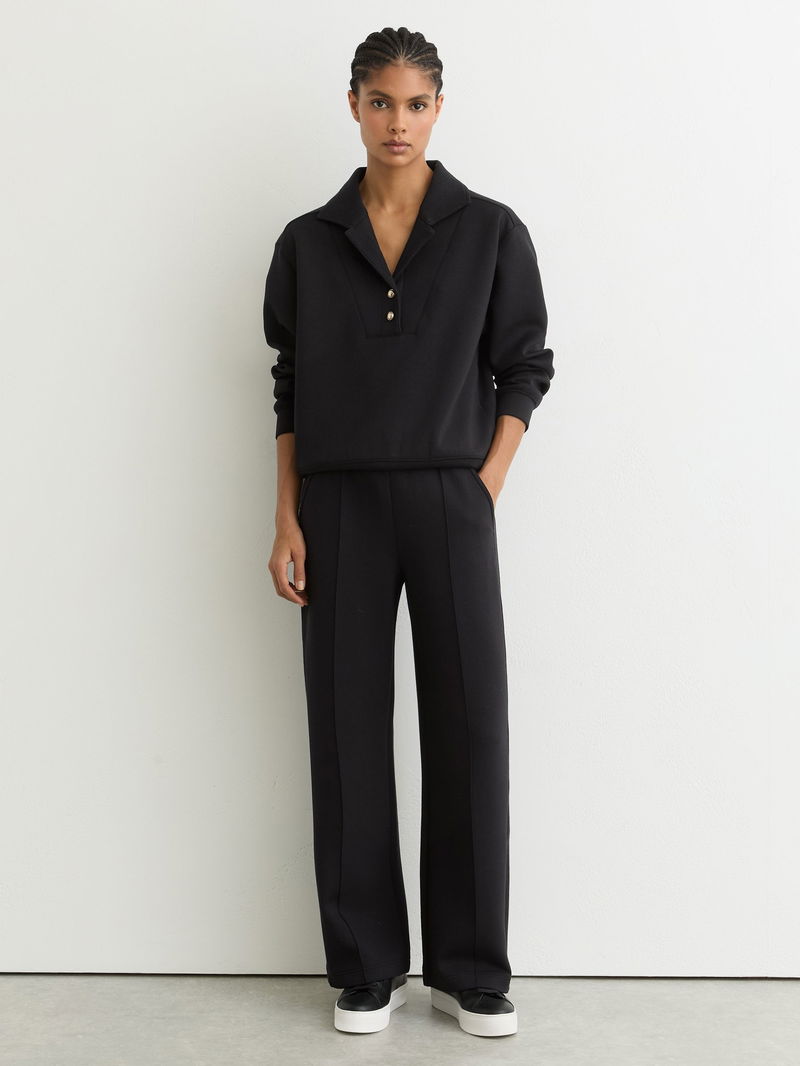 Petite Premium Interlock Wide-Leg Joggers In Black