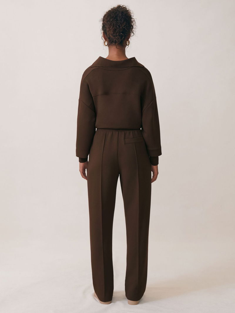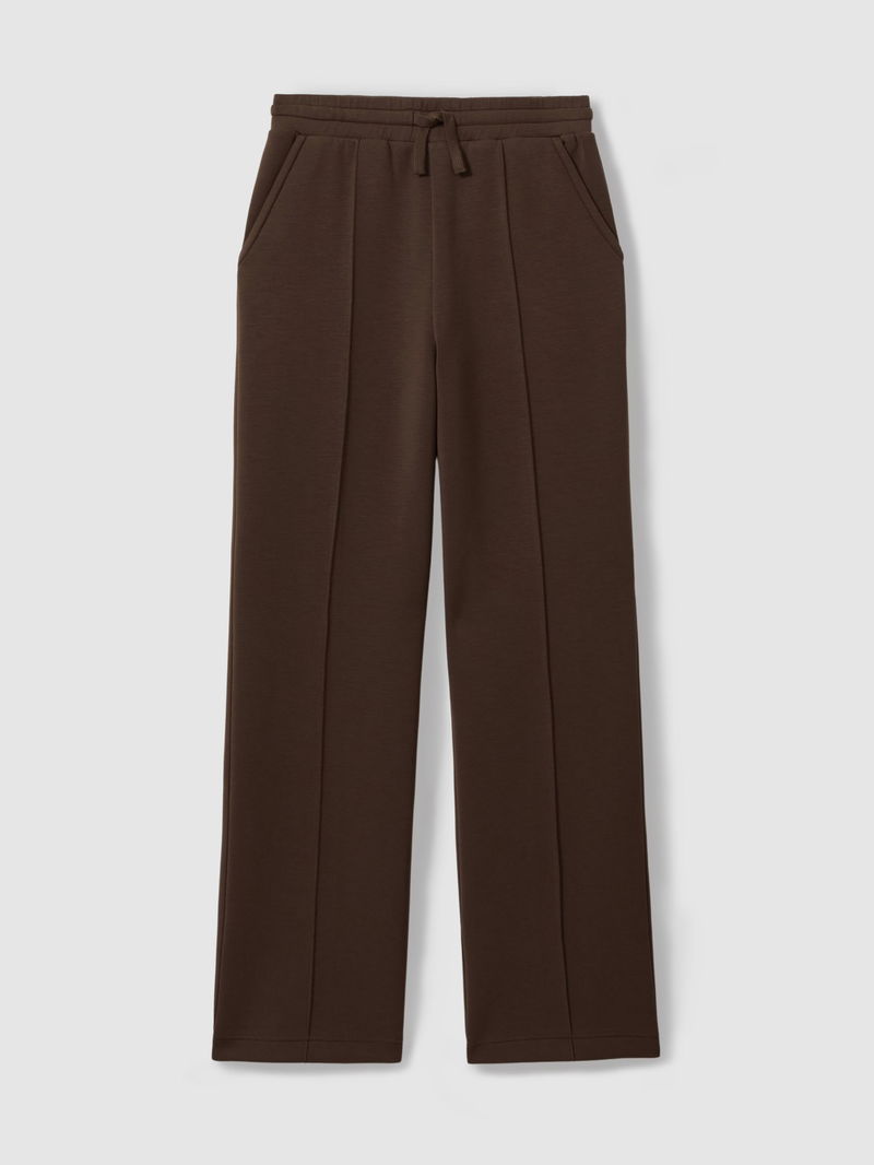 Petite Premium Interlock Wide-Leg Joggers In Chocolate