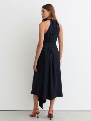 The Burgundy Dalia dress is crafted from stretch velvet for a smooth, body-skimming silhouette. Designed with an asymmetric one-shoulder neckline and flattering ruching through the body, it falls to a sleek midi length for a refined evening look.