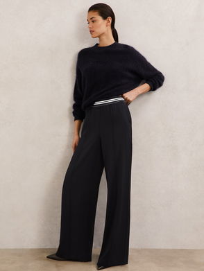 An elasticated waistband detailed with thin stripes lends a casual edge to the Camelia trousers. Crafted from a soft twill fabric, they’re draped to a relaxed wide-leg and refined with front pleats. Wide leg Contrasting elasticated waistband Front pleats Side slip pockets