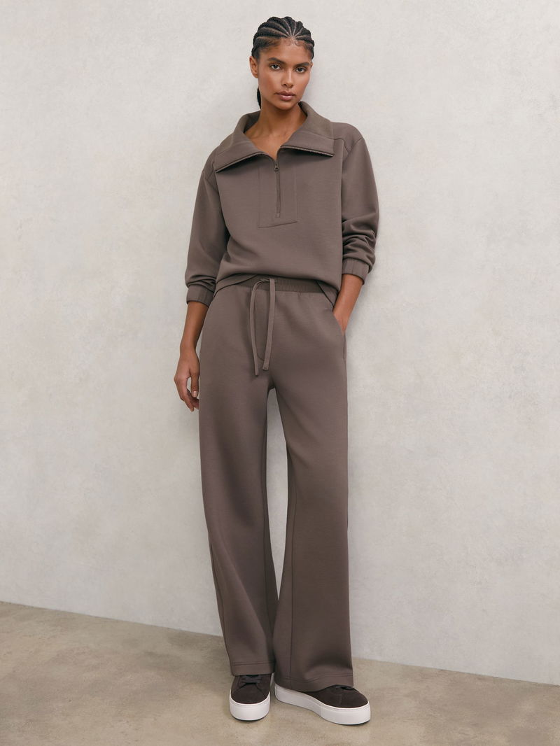 Petite Wide-Leg Interlock Drawstring Joggers In Taupe Brown