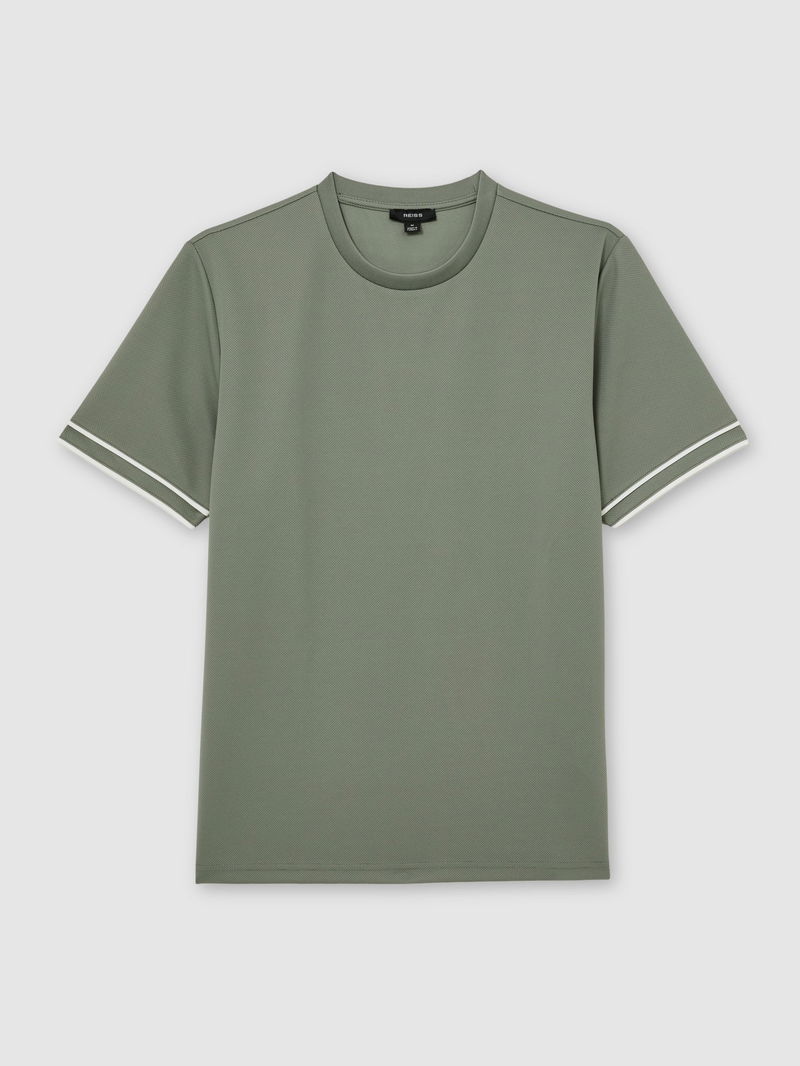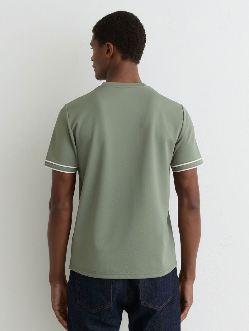 Piped-Trim Textured Modern-Fit T-Shirt In Sage Green