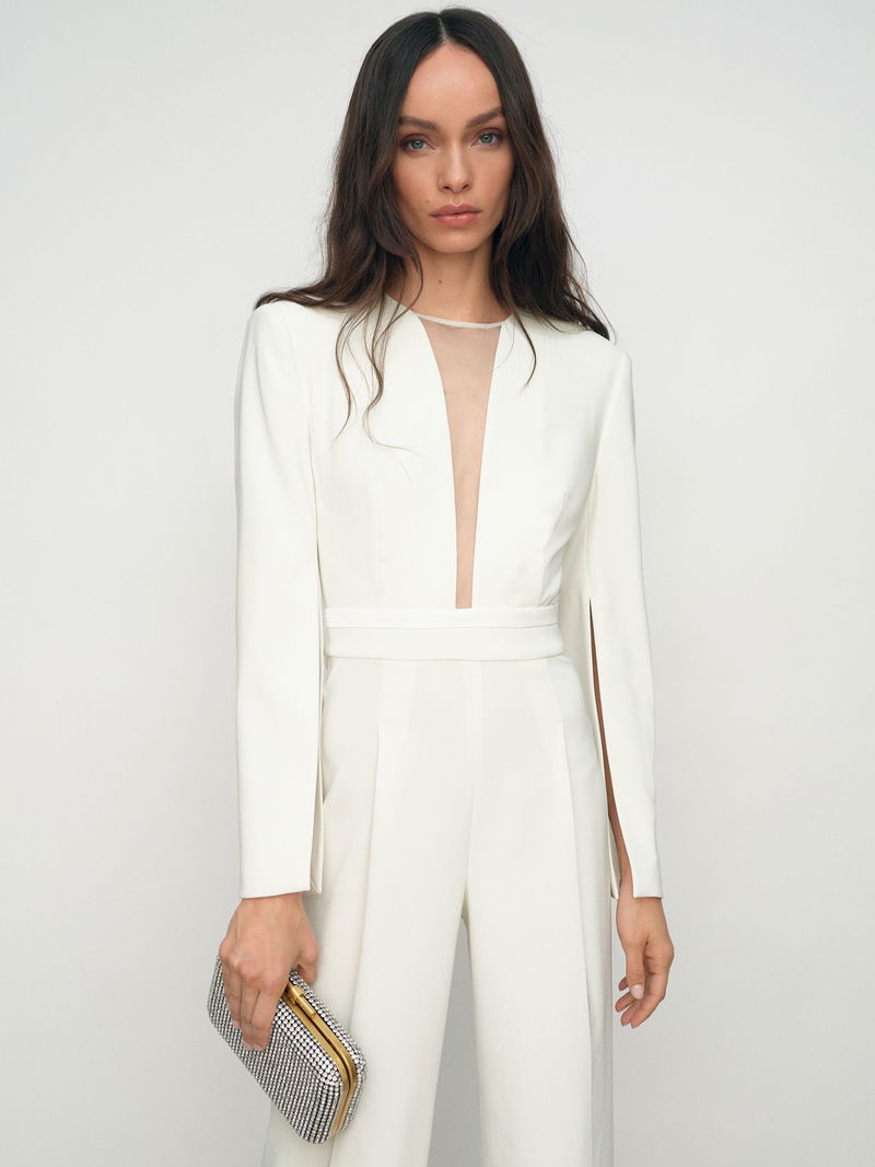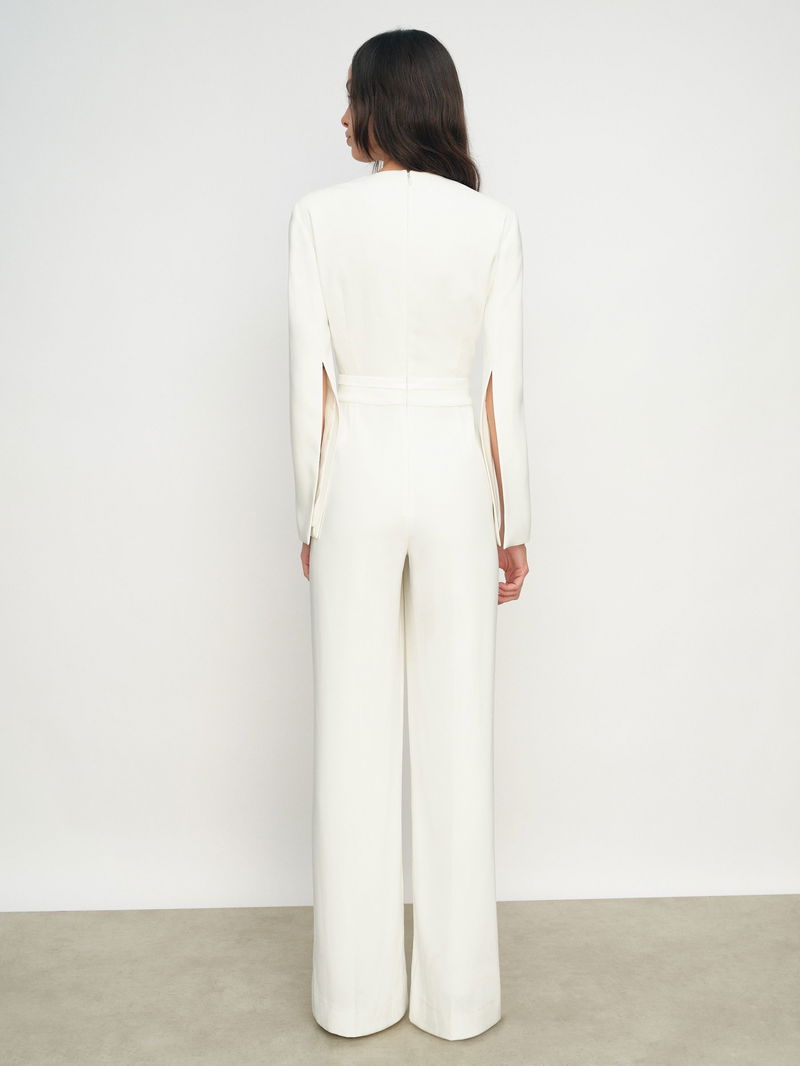 Plunge-Neck Split-Sleeve Jumpsuit In Ivory