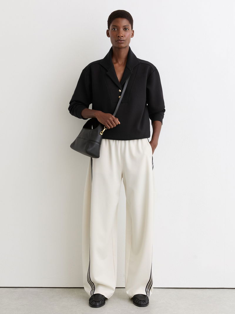 The Bella sweatshirt is crafted from premium interlock jersey with a relaxed fit. It features a rib-knit notched collar and two gold-tone embossed buttons. P