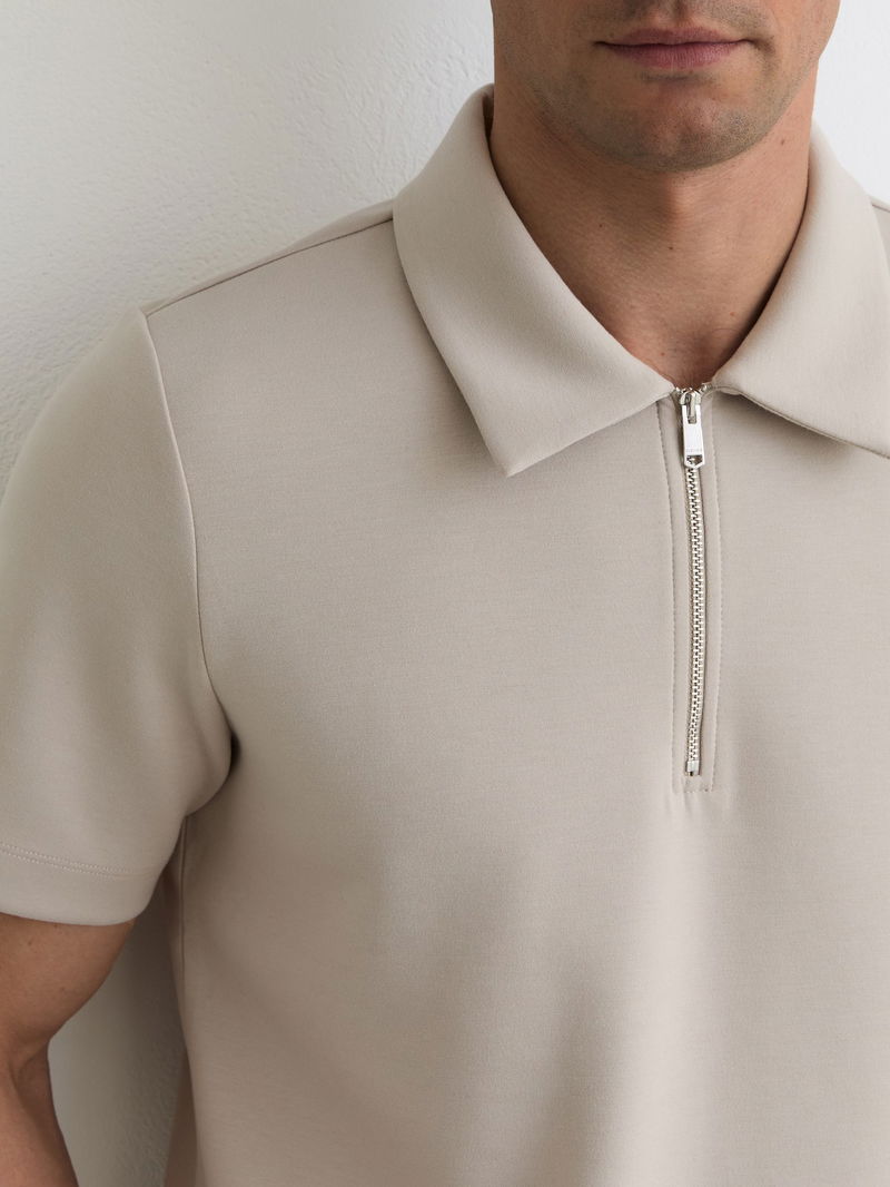 Premium Interlock Half-Zip Polo Shirt In Stone