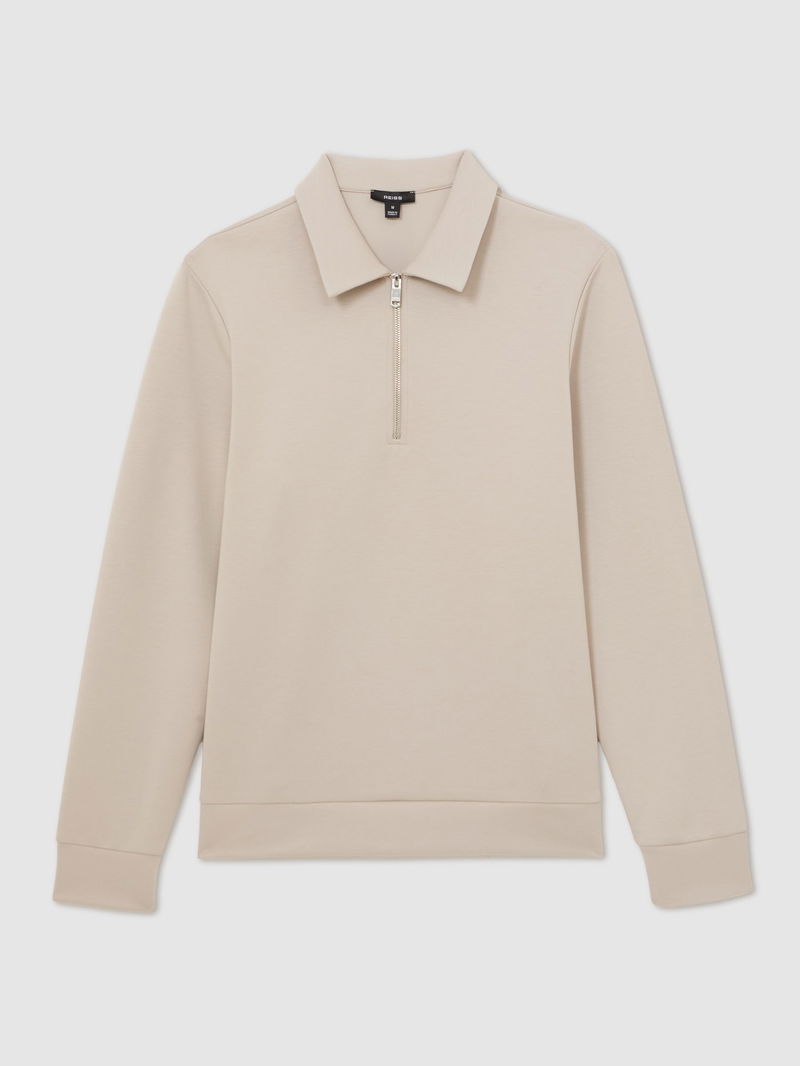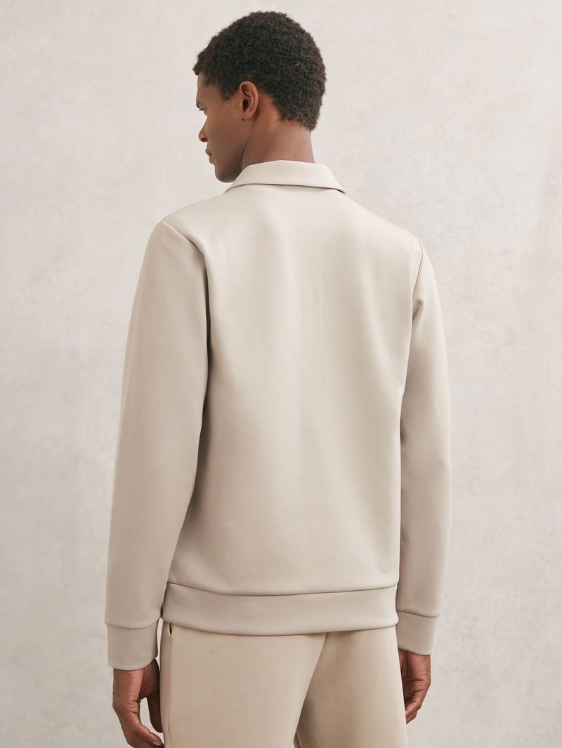 Premium Interlock Half-Zip Polo Sweatshirt In Stone