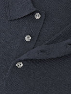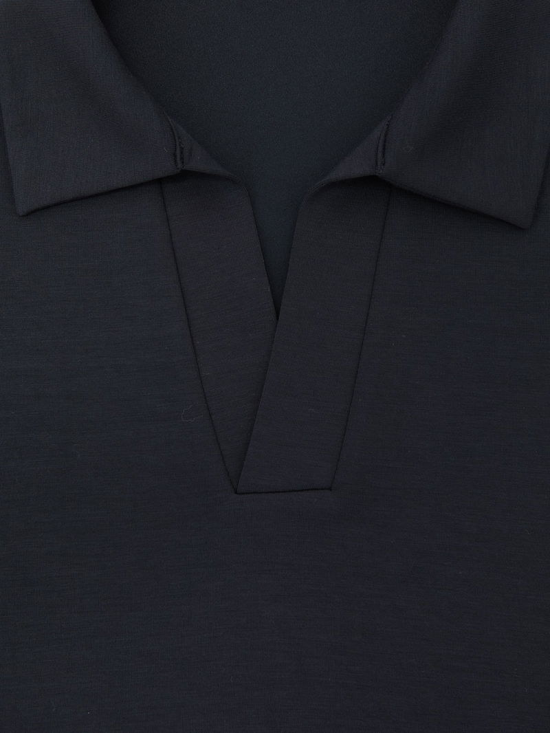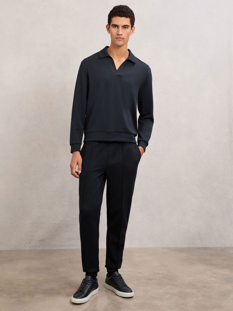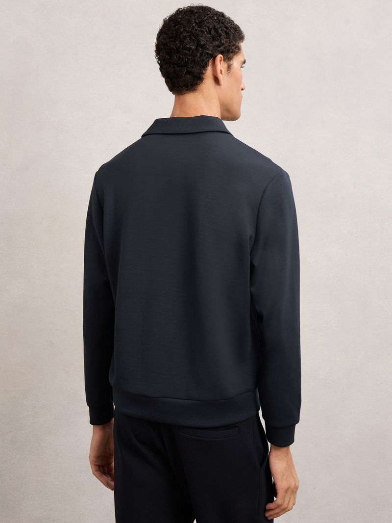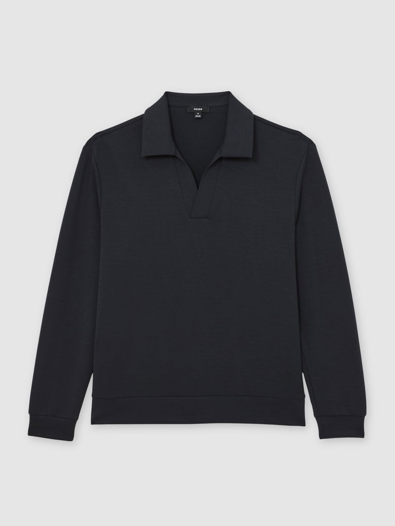 Premium Interlock Open-Collar Polo Sweatshirt In Navy Blue