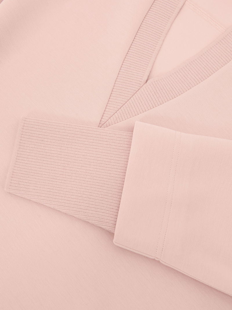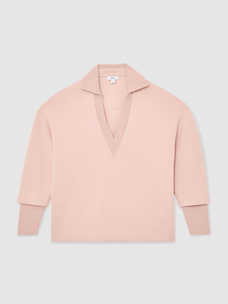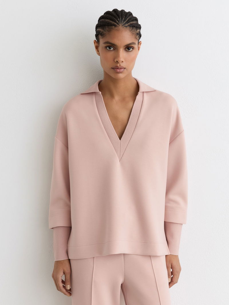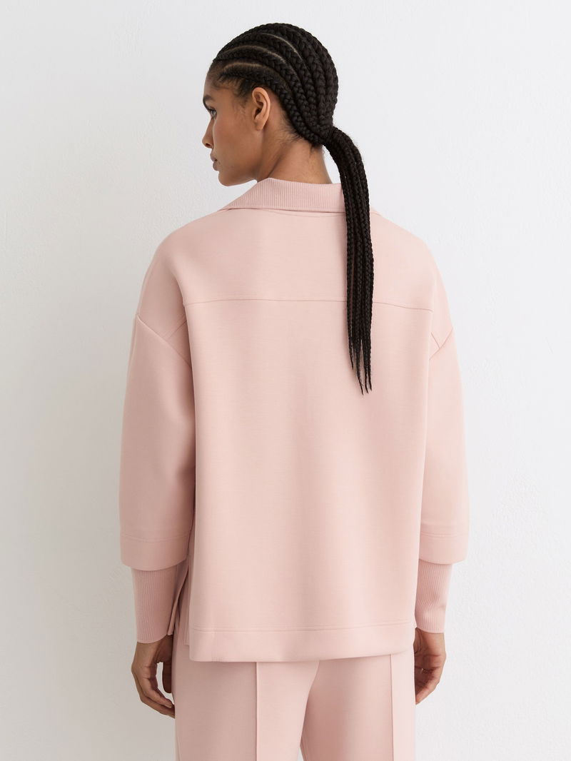 Premium Interlock Open-Collar Sweatshirt In Pink