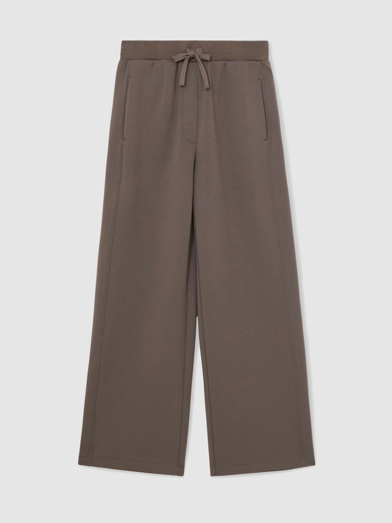 Premium Interlock Wide-Leg Joggers In Taupe Brown
