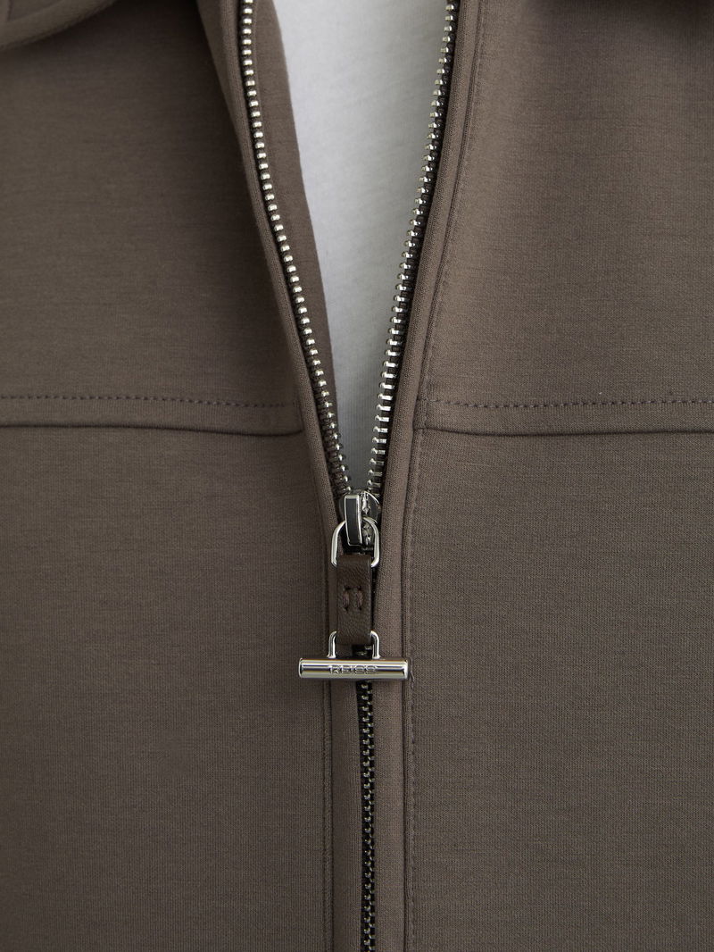 Premium Interlock Zip-Through Overshirt In Light Brown