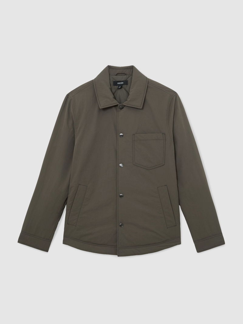 Quilted Press-Stud Overshirt In Dark Green