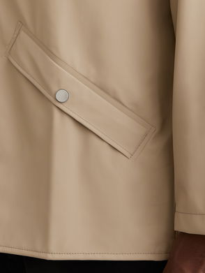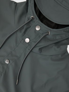 The Suva short rain jacket from Rains is a waterproof pullover jacket, cut from soft, lightweight 3-layer fabric with taped seams and a matte finish. Designed for urban commutes, it features a storm-flap zip, kangaroo pocket, and technical jersey cuffs, with elastic drawcords and rubberised branding adding function and edge. Soft and lightweight 3L fabric. Storm flap closure with waterproof coated zip. Drawstring adjustment at hood. Elastic drawstring adjustment at hem. Kangaroo pocket with zip closure. Technical jersey storm cuffs. Taped seams. Cropped fit Rains, curated by between function and style.