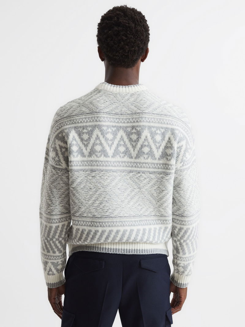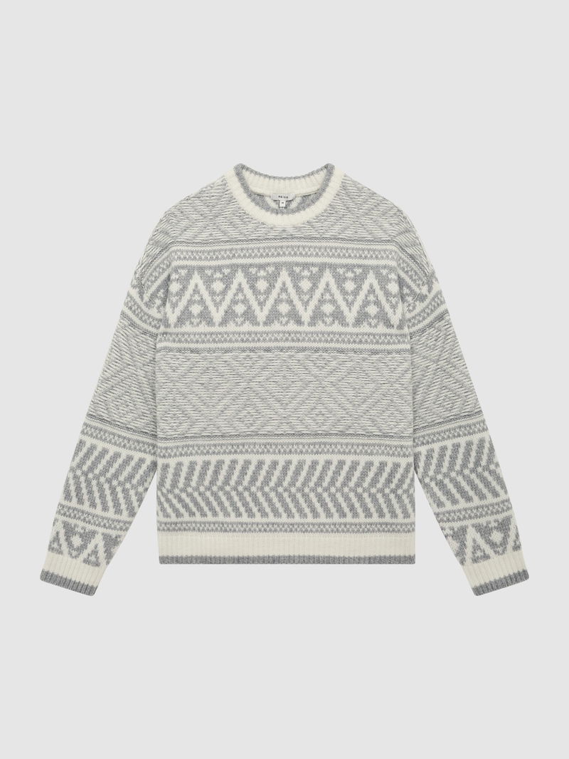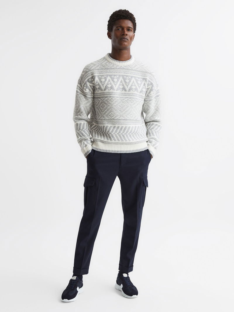 The Ramsay in soft blue brings a seasonal twist to classic knitwear. It s a Fair Isle design with chunky ribbed trims for a snug wear. Style it with your favourite REISS casual trousers and add trainers.