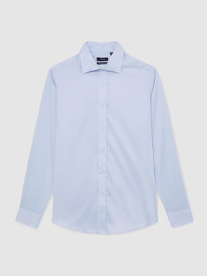 The Blue Stripe Remote Bengal shirt is defined by its timeless two-tone stripe and sleek satin finish. Crafted from 100% Cotton, it’s cut to a regular fit with a spread collar, buttoned cuffs, and a refined French placket for a polished look.