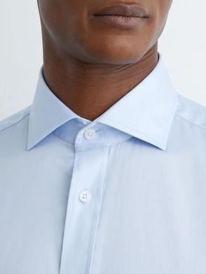 The Mid Blue Remote shirt is crafted from 100% cotton satin for a subtle sheen and refined finish. Cut to a slim fit, it features a modern cutaway collar and double cuffs designed for cufflinks – ideal for formal occasions.