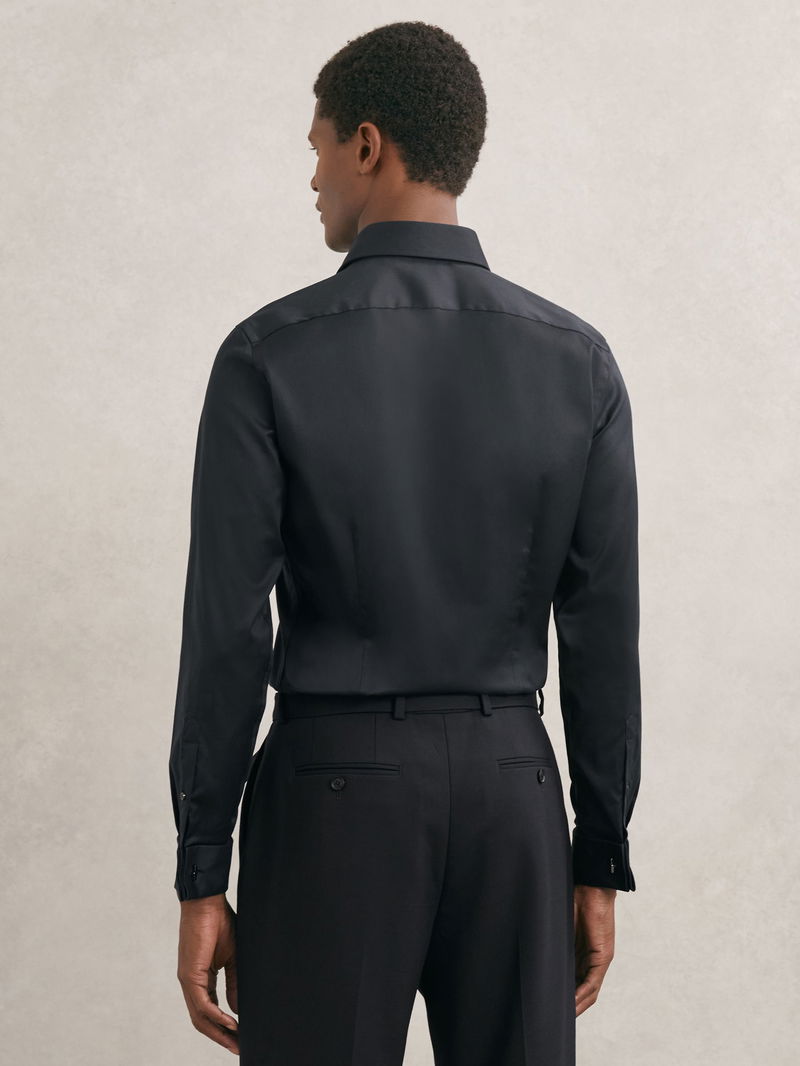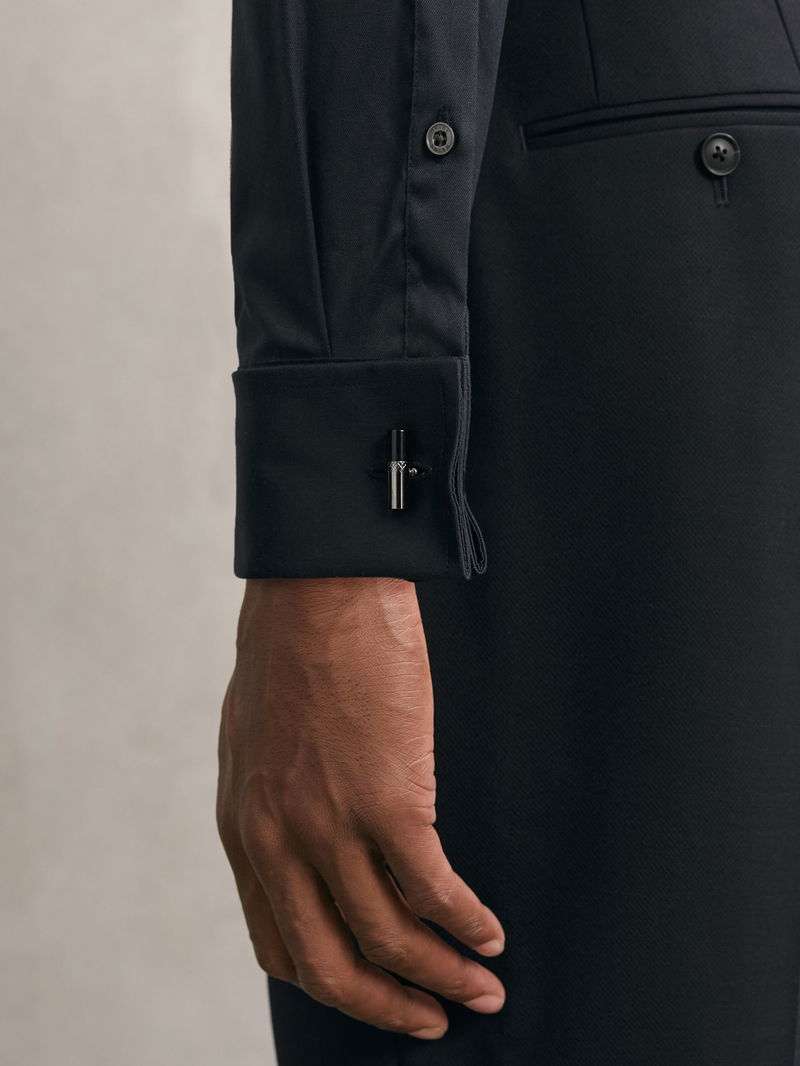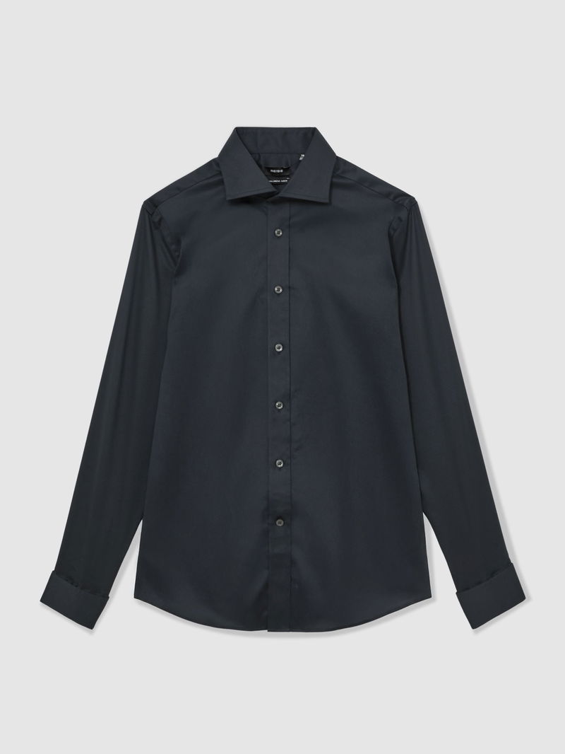 Regular Fit Stretch Double-Cuff Shirt Cotton-Blend In Navy