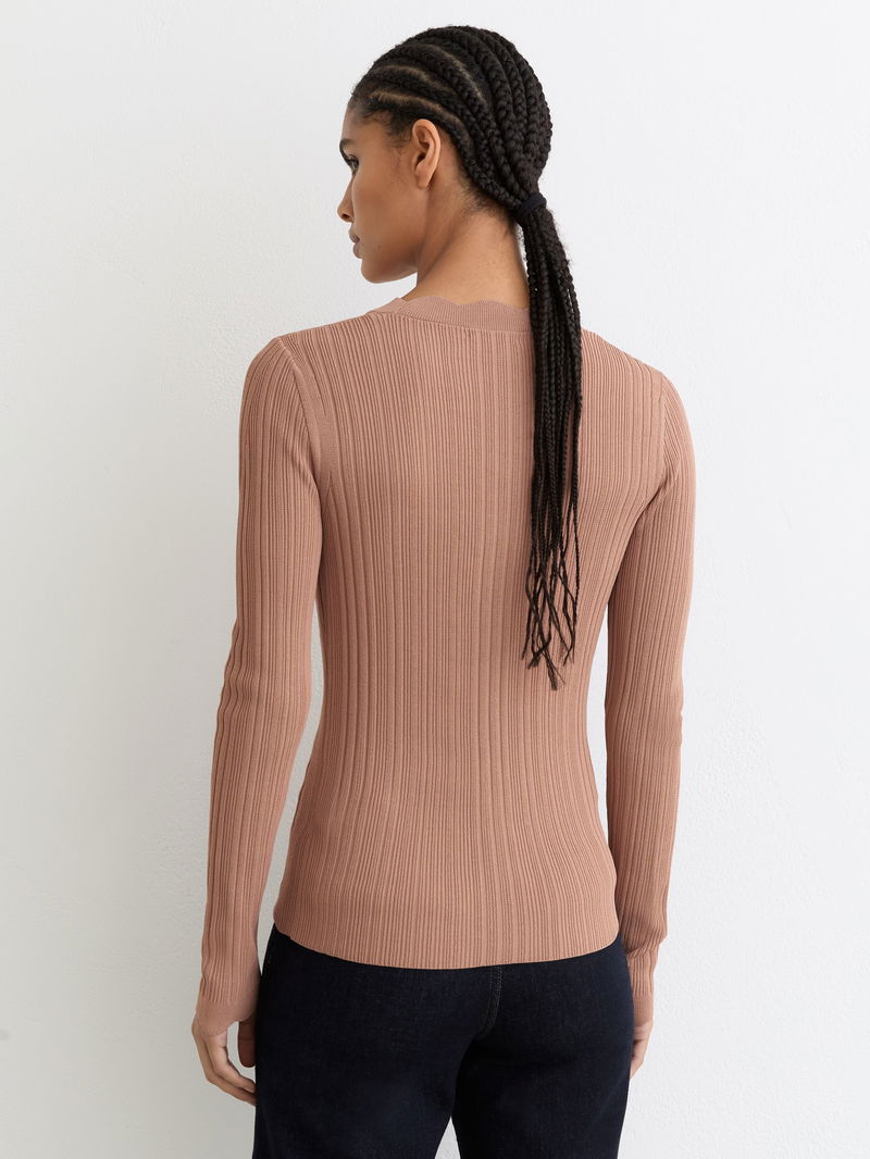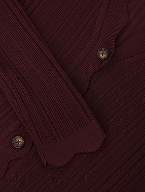Rib-Knit Scallop-Trim Cardigan In Pink