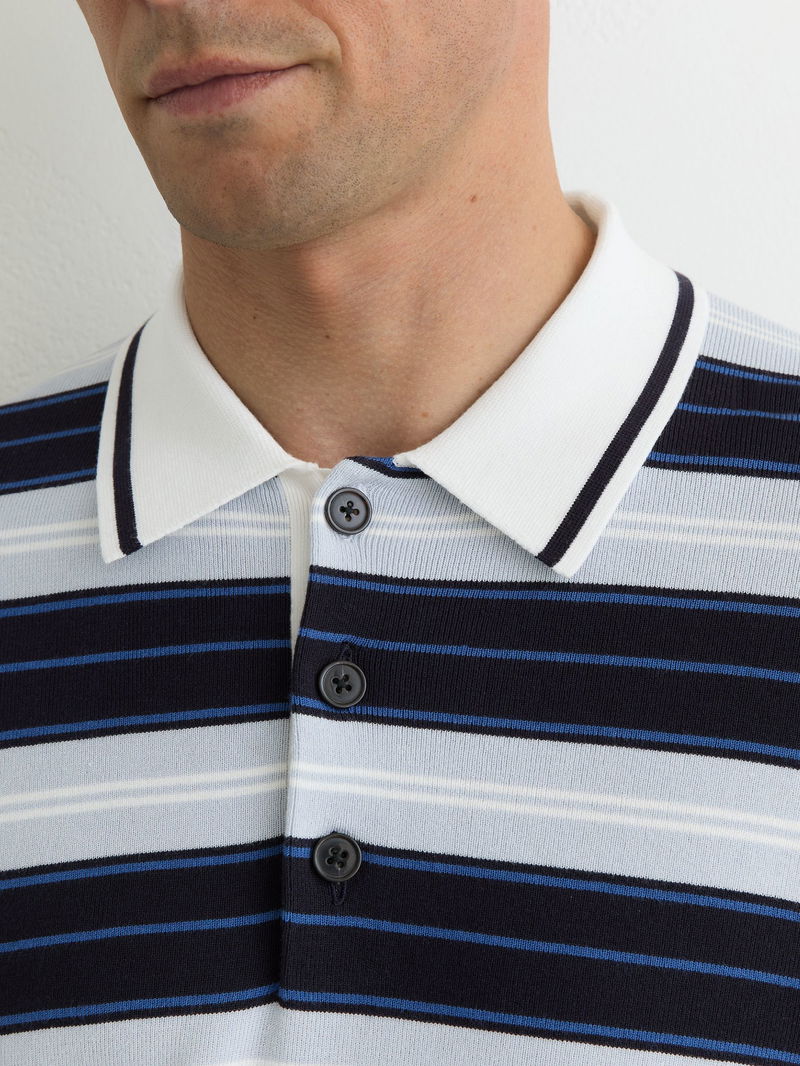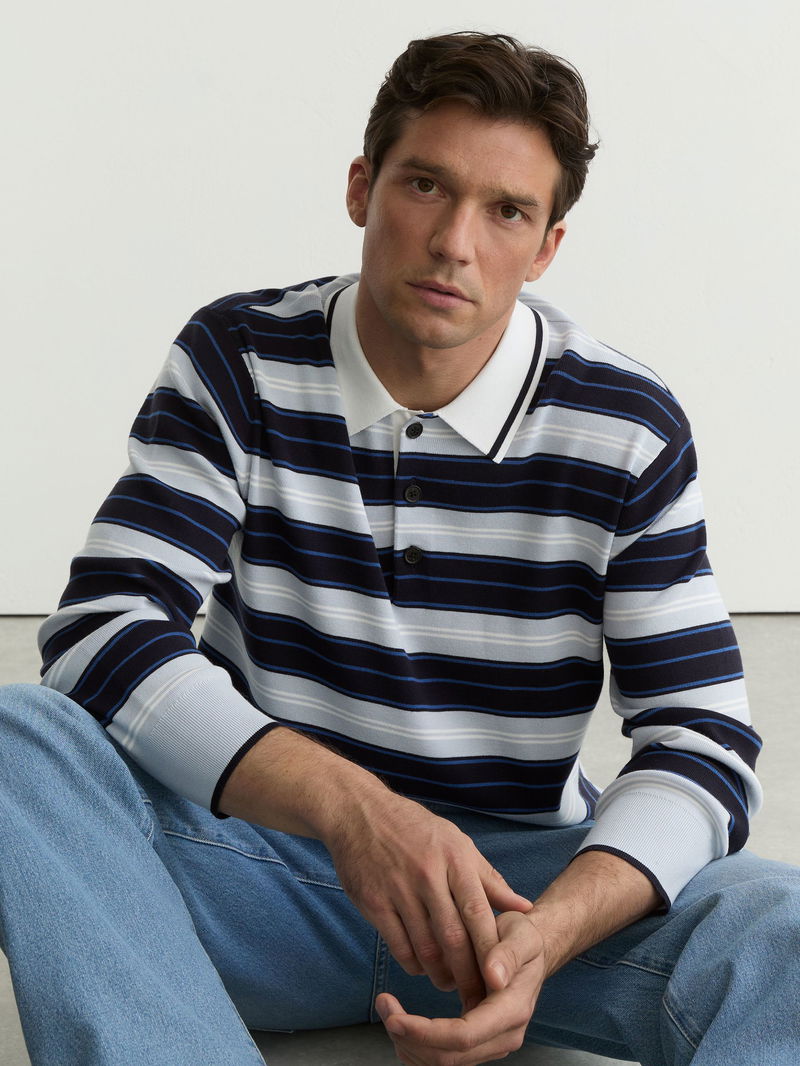 Rugby-Stripe Half-Button Jumper In Blue Multi