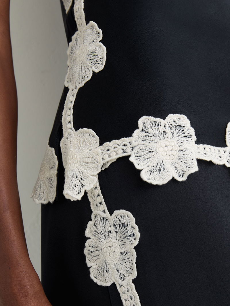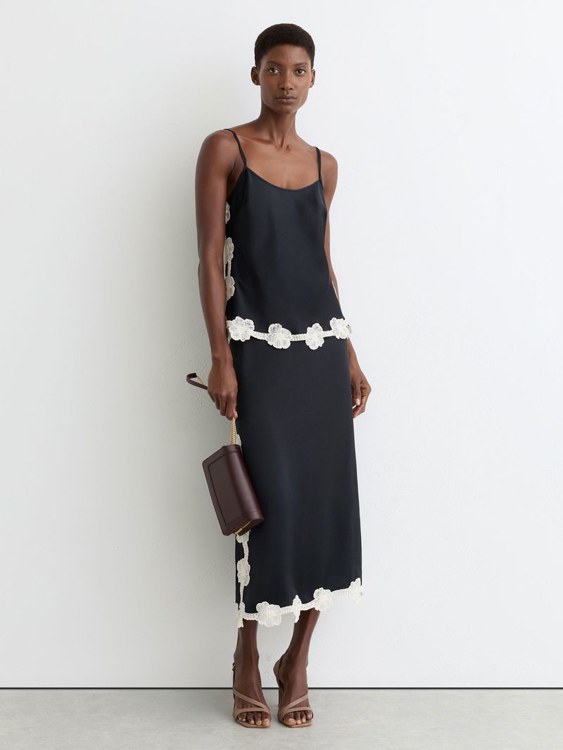 Satin Floral-Lace Trim Cami Top In Navy