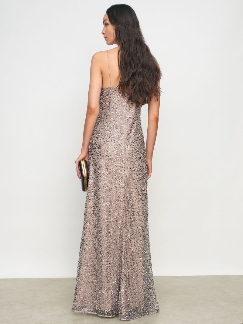 The Faye maxi is an occasion-ready dress, adorned with shimmering sequins and beads that catch the light from every angle.