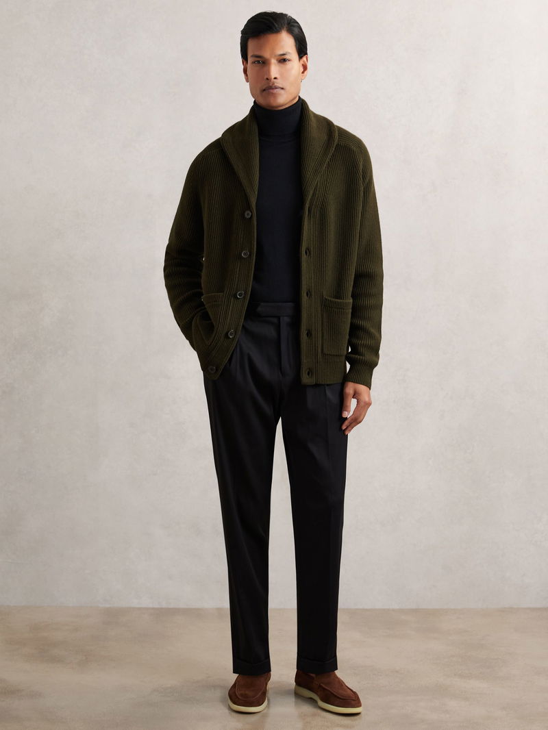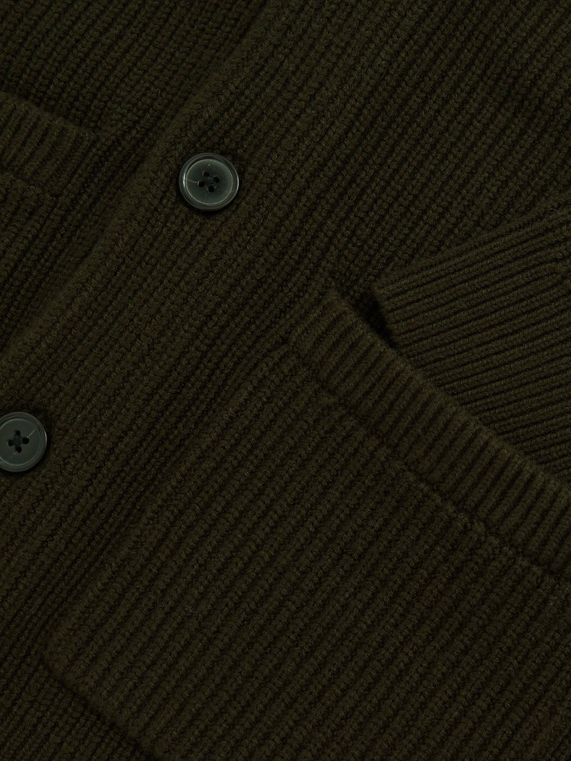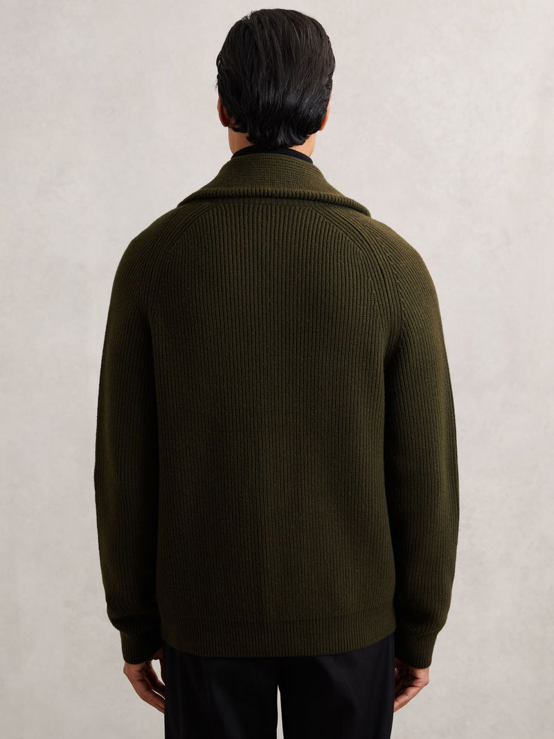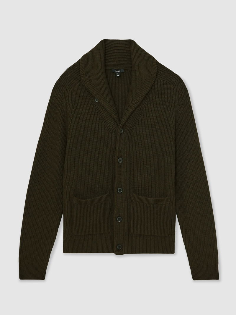 Shawl-Collar Cardigan With Wool In Dark Olive Green