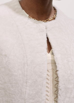 Crafted from plush shearling, the Elia coat is a statement style with a luxurious, occasion-ready appeal. A bold notched collar frames the neckline, while smooth leather panels trace the front opening. A single button secures it at the waist.