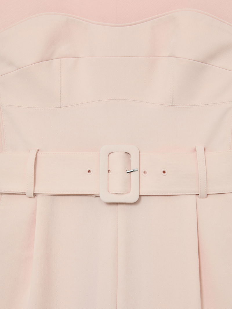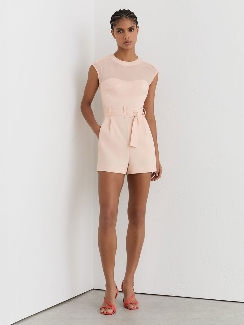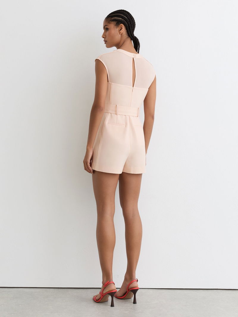 Sheer-Panel Structured Belted Playsuit In Pale Pink