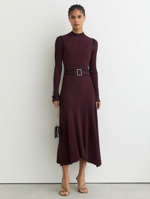 The Angelica dress is knitted to a figure-hugging silhouette with a gathered off-shoulder neckline for an effortlessly elegant look. Sheer long sleeves add a delicate contrast, while it's compact construction and midi length enhance the streamlined shape.
