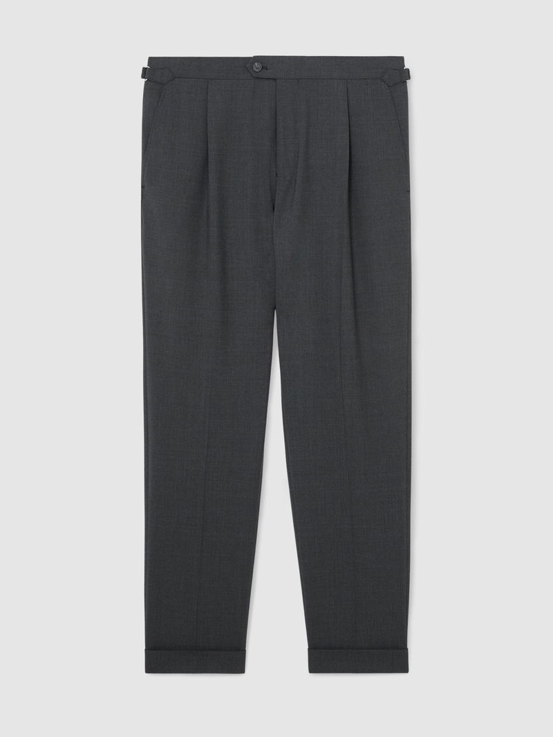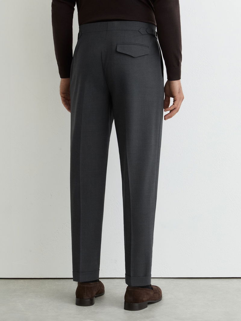 Side-Adjuster Tailored-Fit Suit Trousers Wool-Blend In Charcoal