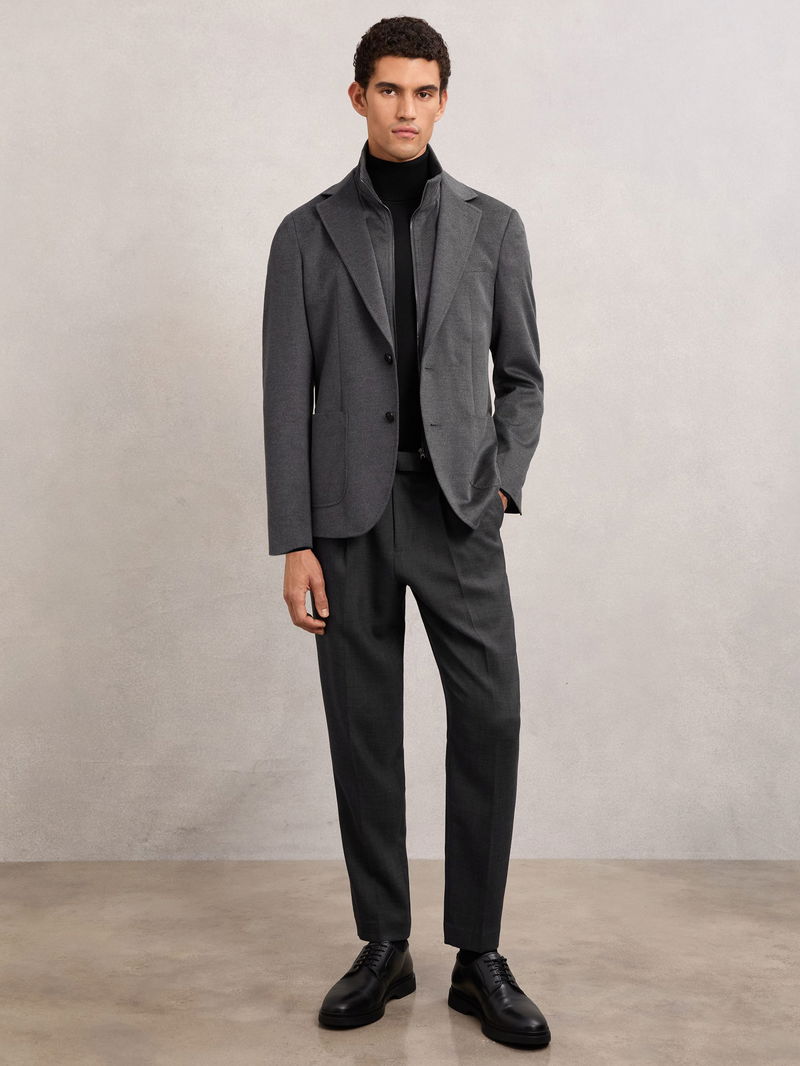 Single-Breasted Blazer With Insert Tailored-Fit Gilet In Charcoal