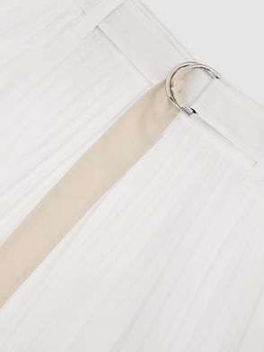 The Savannah midi skirt is crafted from lustrous satin and features stitched pleats through the hips that open into flowing folds for elegant movement.