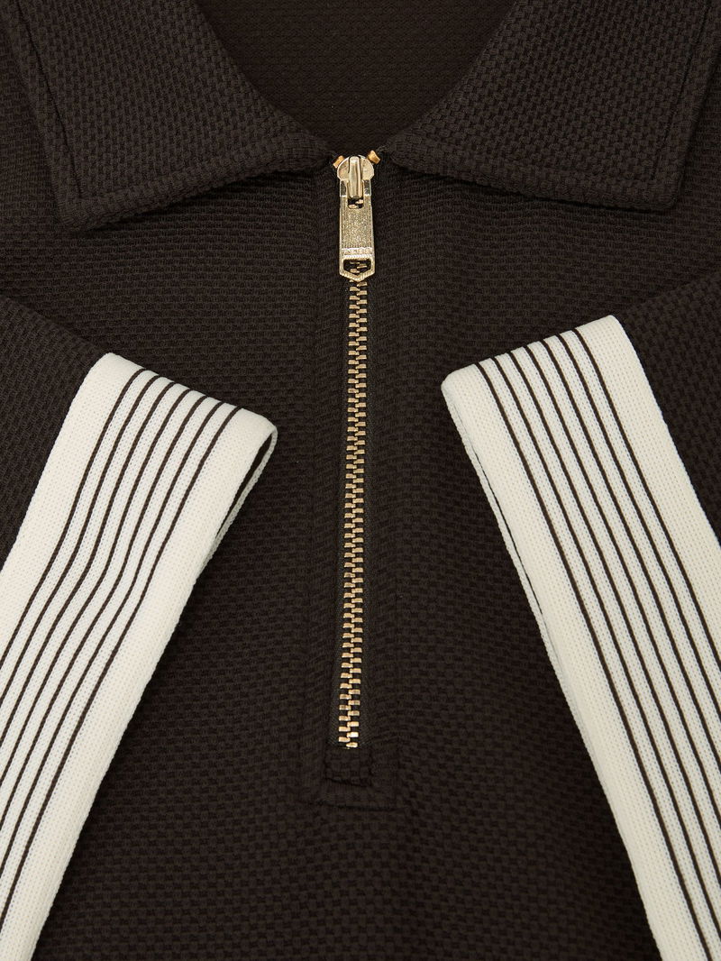 Sleeve-Trim Half-Zip Polo Shirt In Chocolate Brown