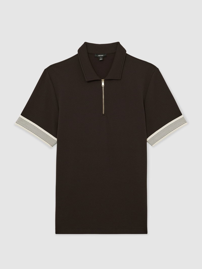 Sleeve-Trim Half-Zip Polo Shirts In Chocolate Brown
