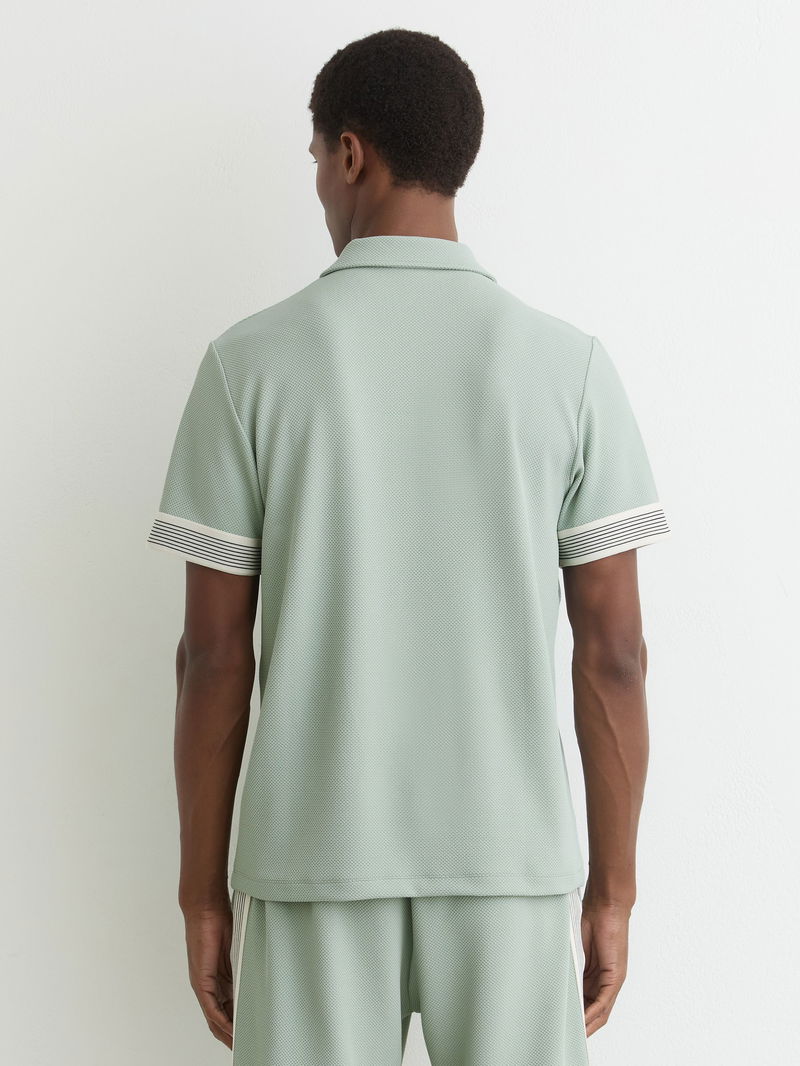 The Bruno polo shirt is crafted from subtly textured fabric, with contrast taping trimming the sleeves.