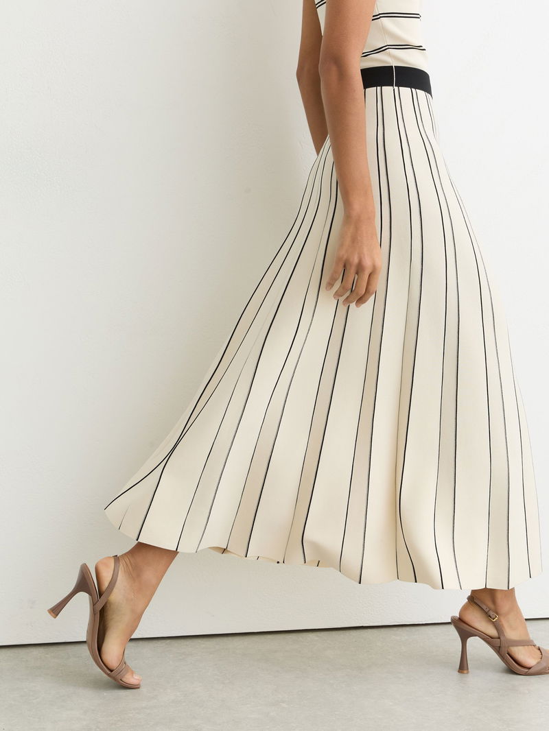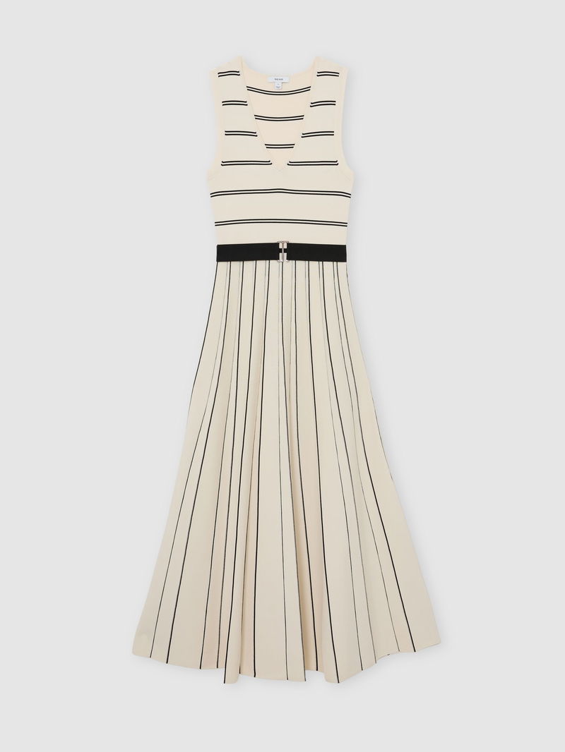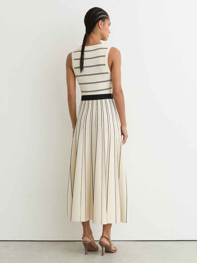 Sleeveless Stripe Knitted Midi Dress In Ivory/Black