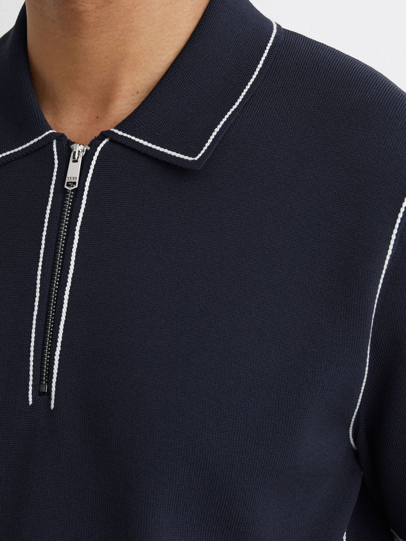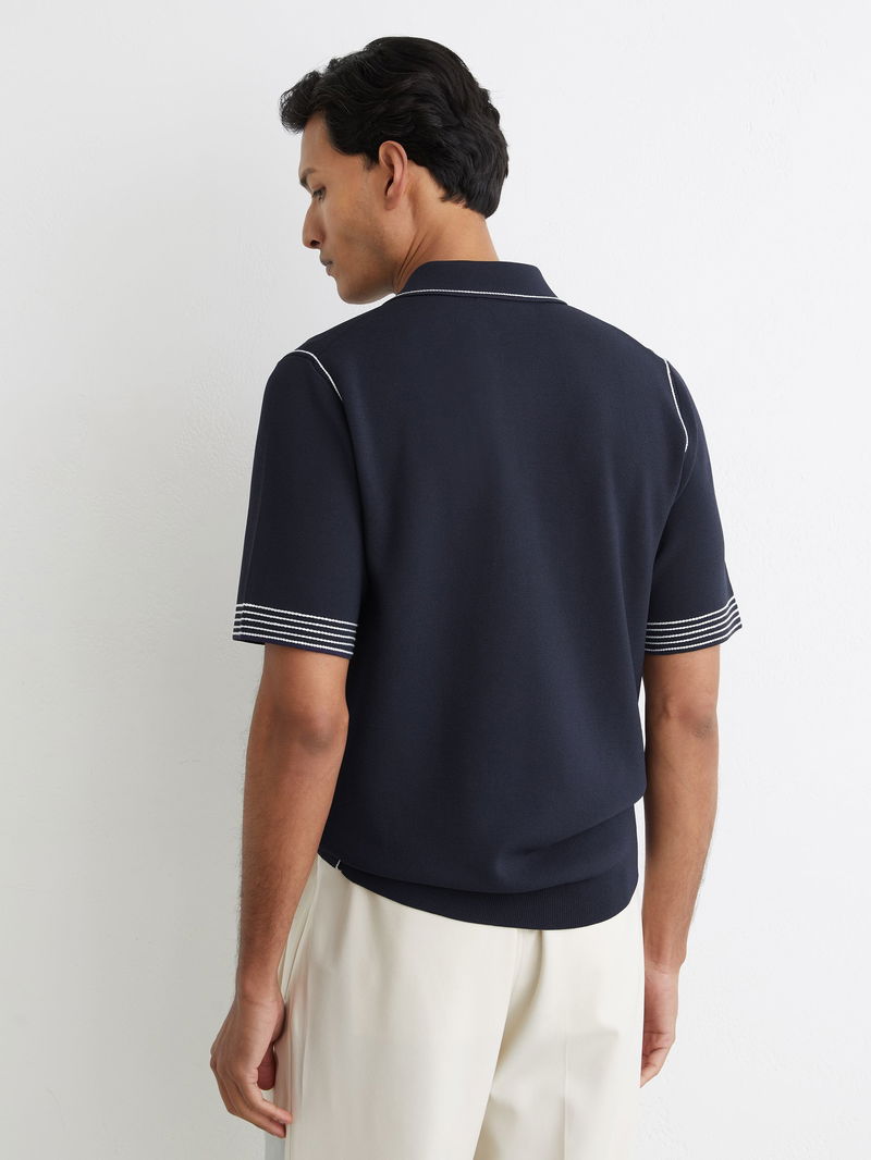 Stitch-Detail Half-Zip Polo Shirt In Navy